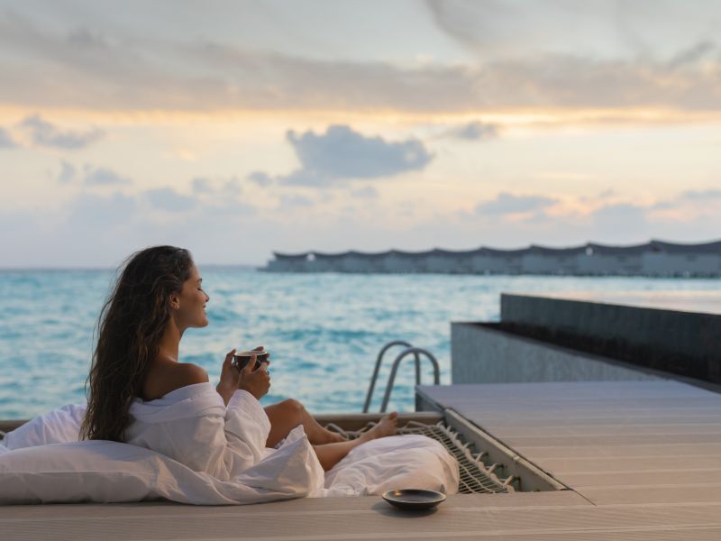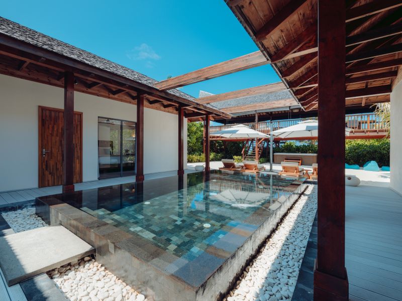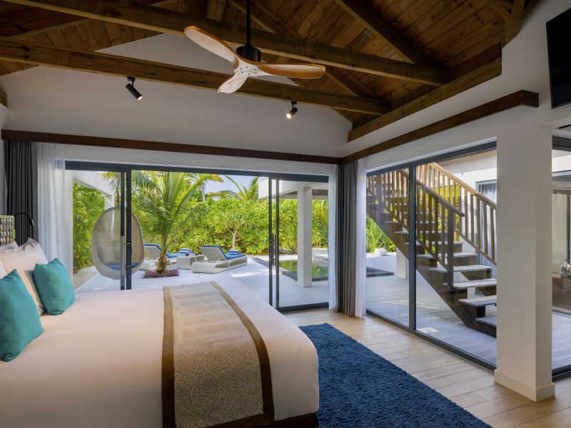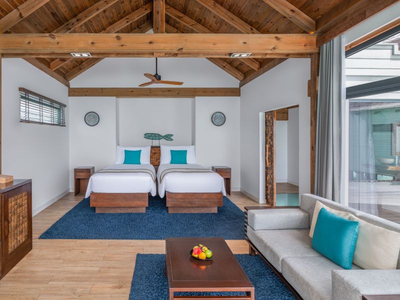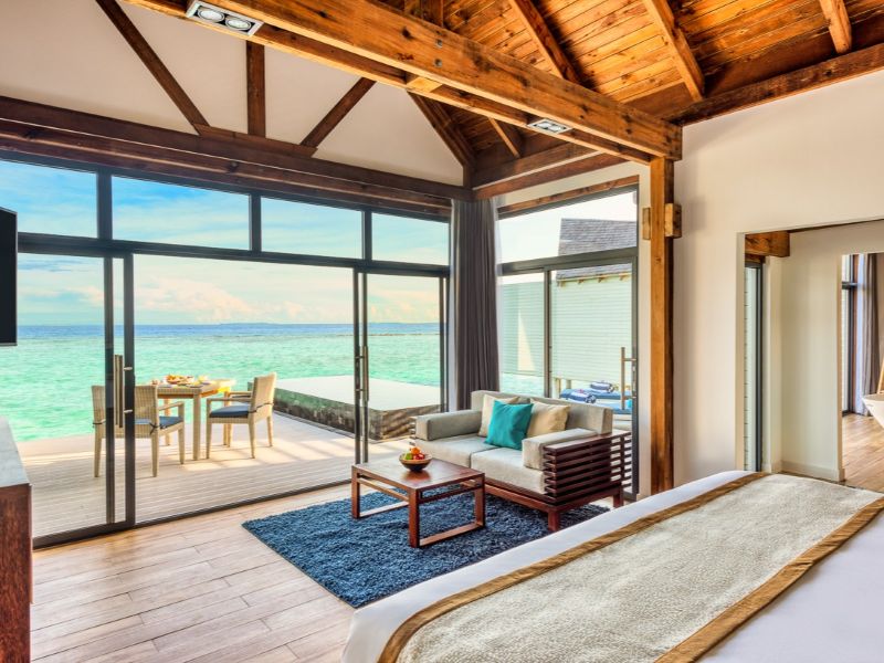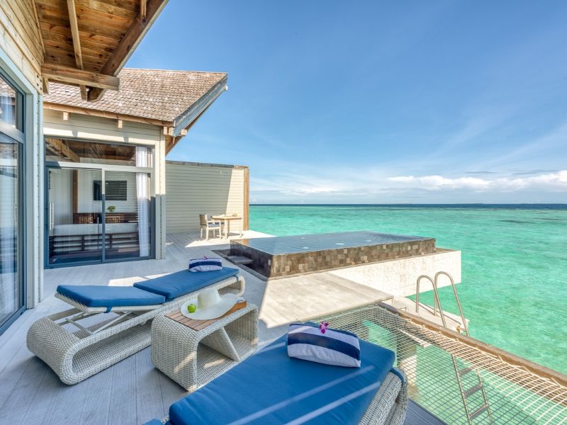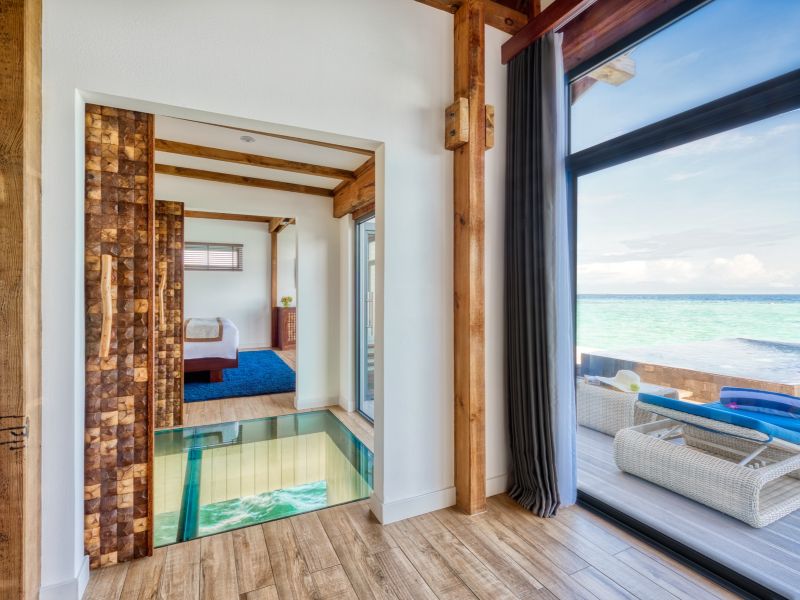全ヴィラにプライベートプールを備え、水上ヴィラには、ガラス床やハンモック付きのお部屋もあり。室内はモダンで快適な空間が広がっています。