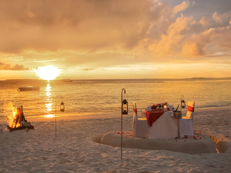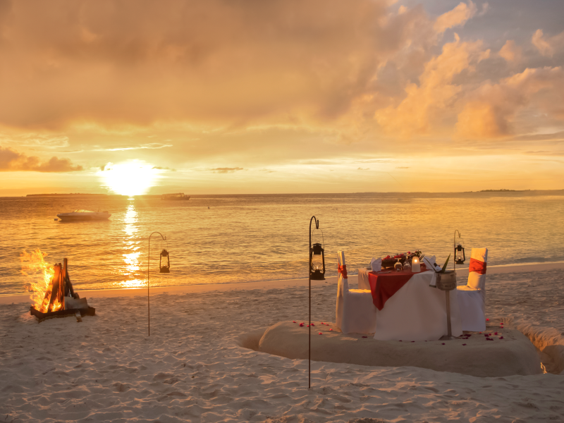 モルディブの比類のない夕日を眺めることのできるダイニングです。