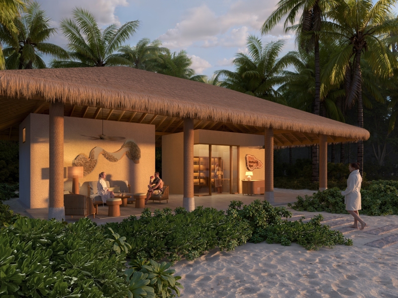 ホワイトサンドビーチと目も覚めるようなラグーンの色のコントラストはモルディブ中でも高ランクに位置すること間違いなしのリゾート。