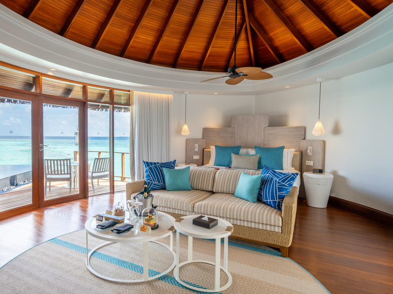 ターコイズ色のラグーンに位置する、モダンなデザインのお部屋です。